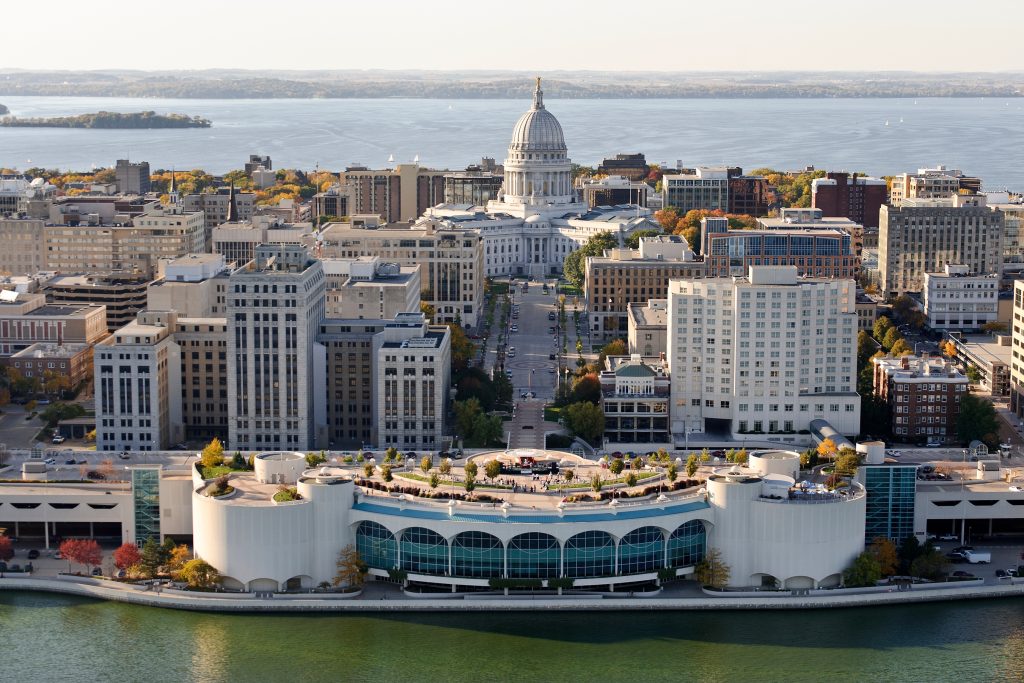 Madison is a mid-sized city (population 270,000) located in south-central Wisconsin. It is the capital of Wisconsin and the second largest city in the state. The Ho-Chunk Nations, which has call this land home for over 12,000 years, calls the area Teejop (Dejope) meaning “four lakes.” Lakes Monona and Mendota constitute two of the four lakes and also sandwich the city in an isthmus. The city is known for its craft food and drink, friendly culture, sports teams, bike friendliness, arts and festivals, beautiful nature, and of course, UW-Madison!